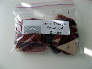 The Large Triangle Sawtooth Border units are next in line and then the beginning of stitches on the Ohio Star Border. I will be working on this chapter probably through the beginning of the week.
