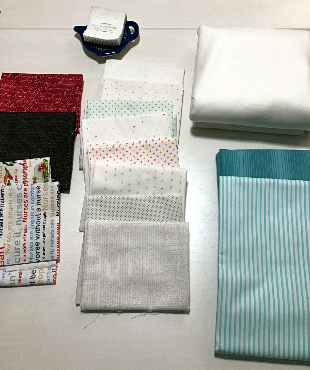 This was our sewing area at the retreat. Bonnie's living/dining room. Bonnie was taking photos while we were sewing or making jewelry.Bonnie was working on a tropical 5" square project. The final version may end up with sashing in teal and perhaps black outer border. It was a bit busy having the squares next to one another. Her second project lay in wait until a second copy of the pattern could be secured. There was lots of strip cutting afterwards, but no pictures to share.Donna joined in making jewelry for us. This is a new craft project for Donna. She even learned a new way of tying off a single strand bracelet. These pieces were gifted to each of us. Thanks Donna!Kerry's first project and the only one photographed comes from the 2022 Cupid Box, Fat Quarter Quilt Shop. It really turned out nice. Kerry's second project is a black version of Winter Blues. A huge project that she managed to do quite a lot of work on. You will see both of these projects on her blog and again on my blog as I will be making both projects too.Kristy worked on a year long BOM project. This one is a large project. I think she got all but two months and putting the entire project together done during the retreat. What you see on the design wall is just a portion of the project.Terry's first project is a lap size that will be perfect to snuggle up with if Yuma ever gets chilly... Actually I suppose there are some of those evenings inside with the AC. Terry worked on a second project, but no photos of it.